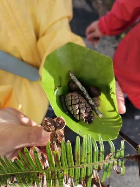 その後もたくさんのどんぐりや葉っぱを拾ったり、朽ちた木の不思議についてお話ししてもらったり、ゆっくりと散策を楽しむことができました![]()